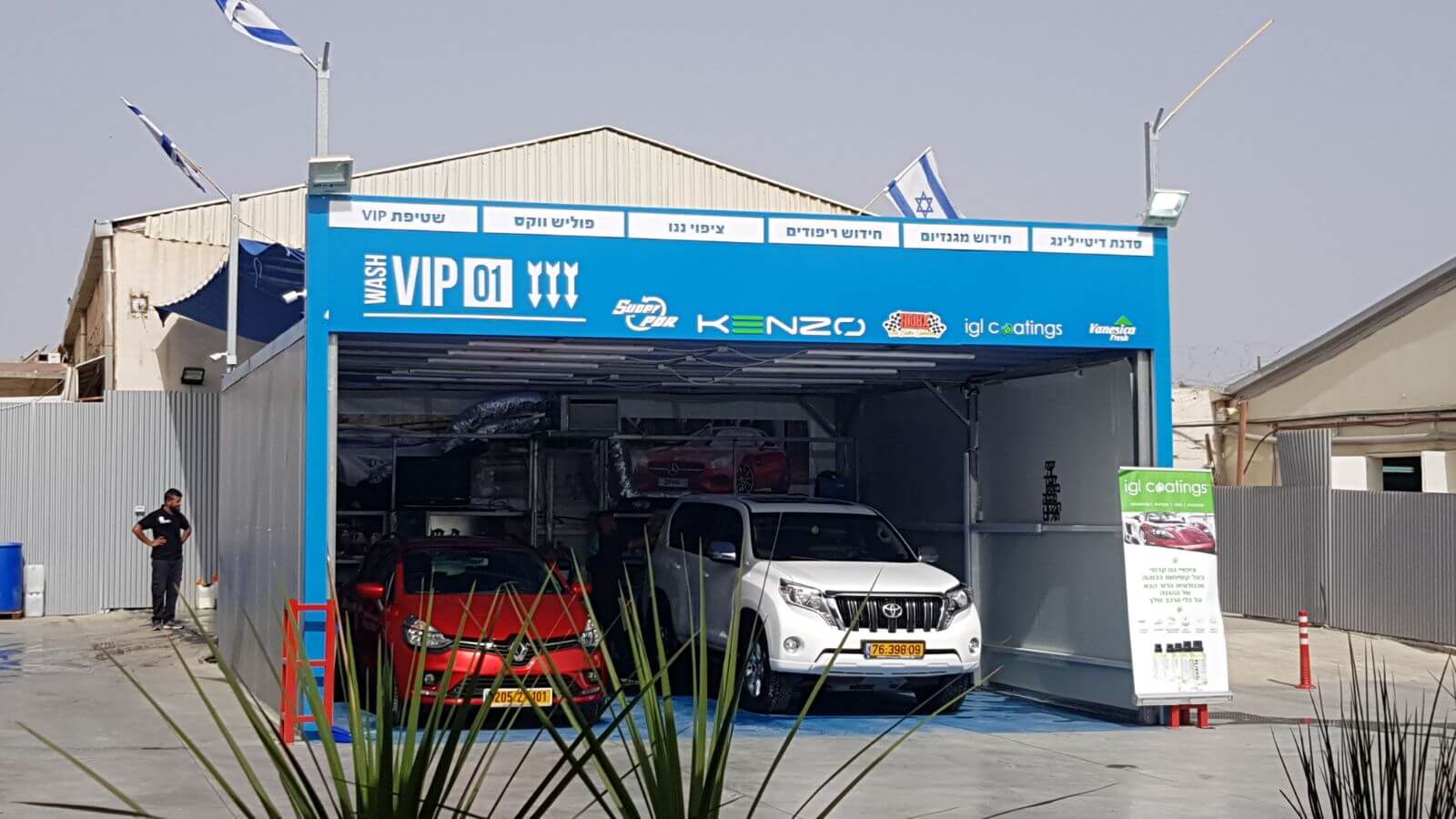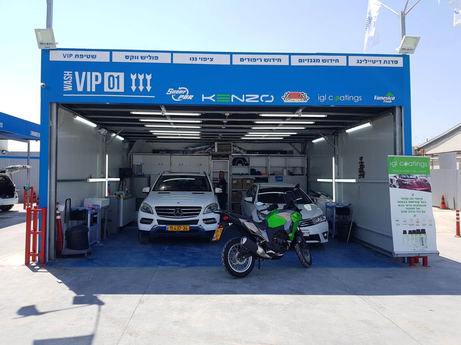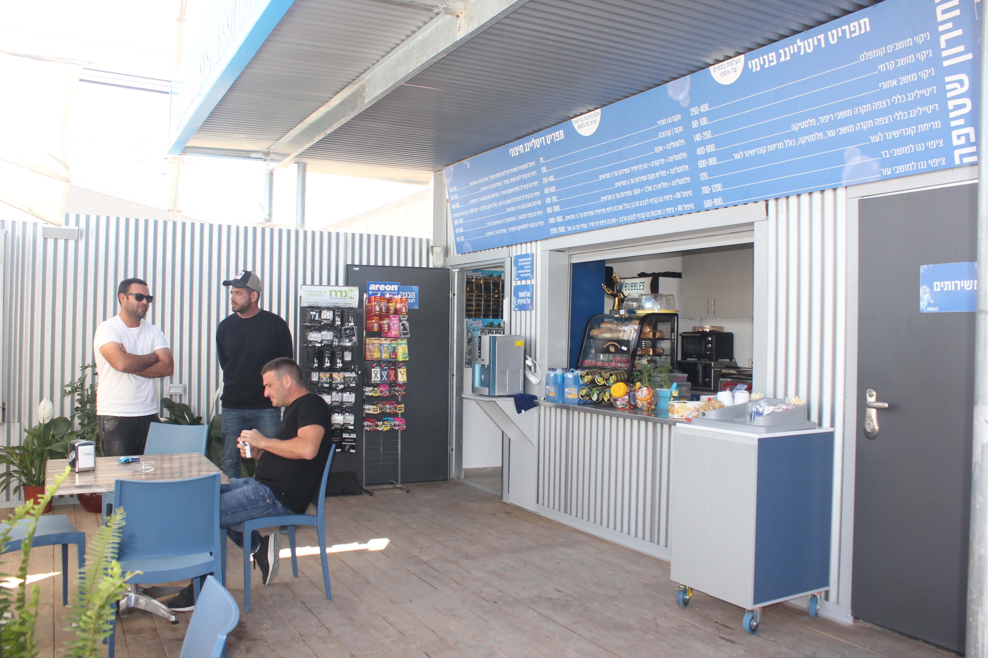 המקום מציע סדנת טיפולים מיוחדים לרכב עם מגוון פתרונות קוסמטים ודקורטיביים ,מתחם המתנה עם קפיטרייה מפנקת, מרכז התקנות וחנות אביזרים עשירה בכל טוב ועמדות משודרגות לשטיפת רכב פנימי וחיצוני .